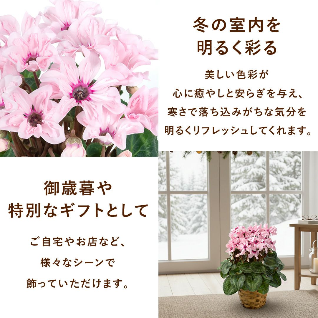 他の画像を見る 送料無料 鉢植え お歳暮・クリスマス 冬のギフトに 鉢植え シクラメン イリュージア 5号鉢 <バスケット付> 【11月29日~12月19日のお届け】 送料無料 当店特別価格 ¥ 6,480 税込 会員価格あり Web会員様特別価格 ¥ 6,155 税込 在庫切れ 詳細を見る お気に入りに登録する