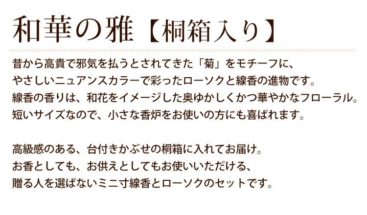 他の画像を見る 即日発送 プラスワン お花にプラスワン 4種の線香セット 「花げしき」 当店特別価格 ¥ 1,100 税込 会員価格あり Web会員様特別価格 ¥ 1,045 税込 詳細を見る お気に入りに登録する