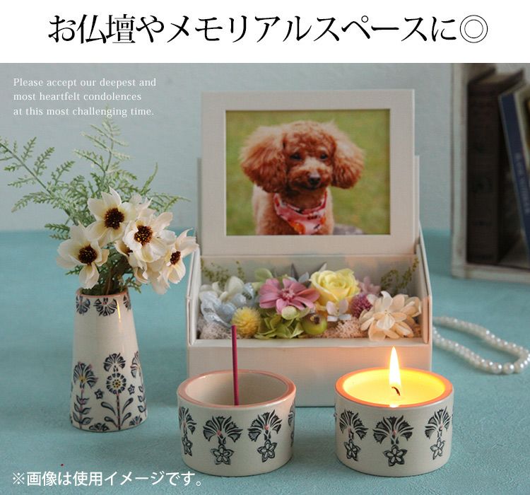 他の画像を見る セット商品 プラスワン お供え お彼岸 法事 命日 一周忌 お悔やみ お盆 お供え物 【お花にプラスワン】メモリアルセット 陶器製 キャンドル お香立て 花瓶 セット 仏具 花器(※メモリアルセットのみの購入はできません※ 当店特別価格 ¥ 2,200 税込 詳細を見る お気に入りに登録する