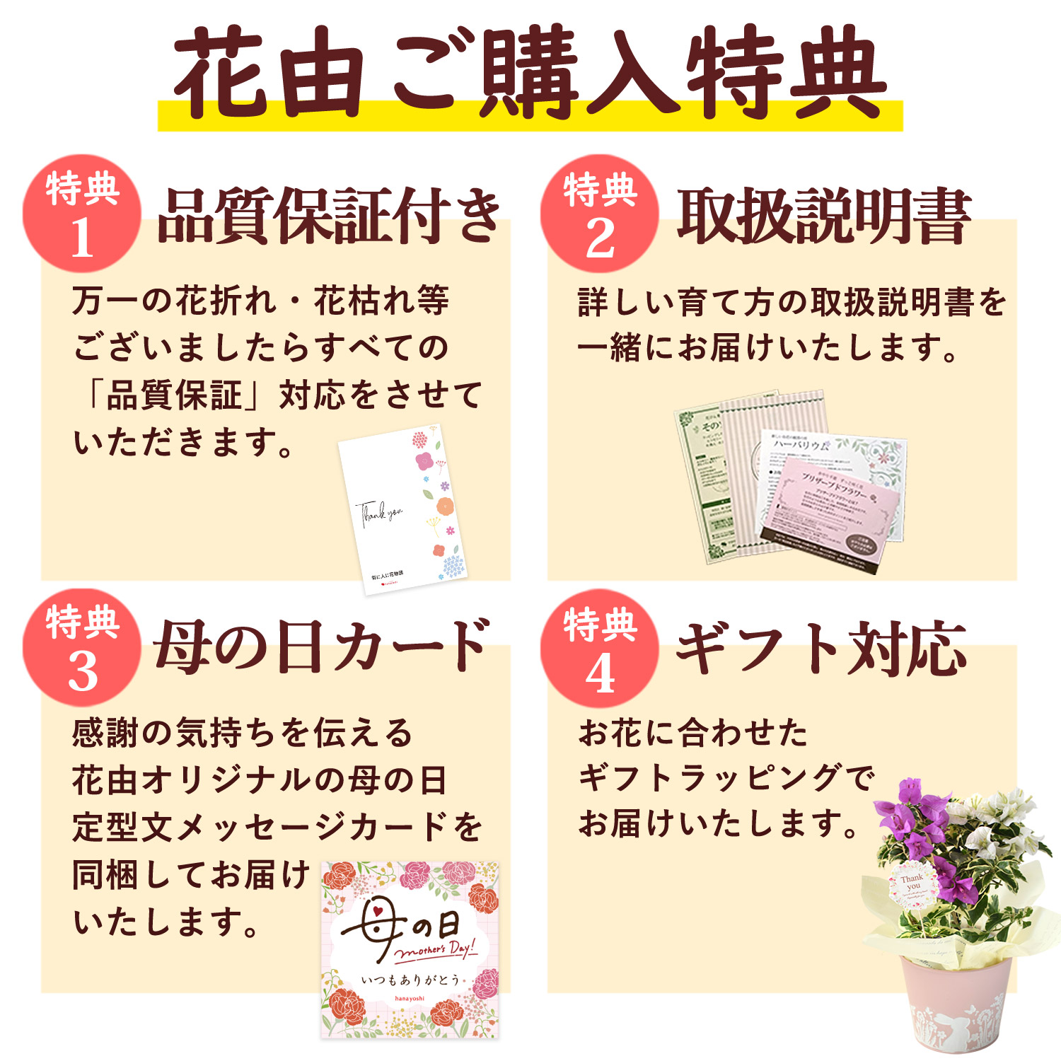 当店オリジナル母の日カード/取扱説明書/品質保証付きショップカード