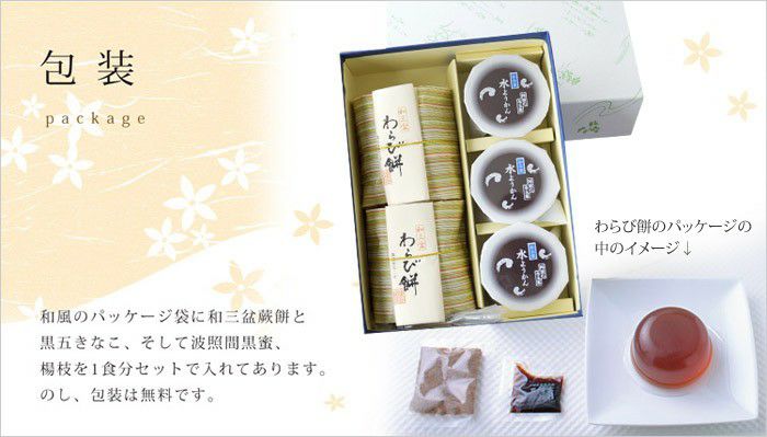 他の画像を見る プラスワン お花と一緒にお買い求めください お花にプラスワン あわや涼菓セット 水ようかん 3個&わらび餅 2個 セットお花と一緒にお買い求めください 当店特別価格 ¥ 2,203 税込 在庫切れ 詳細を見る お気に入りに登録する