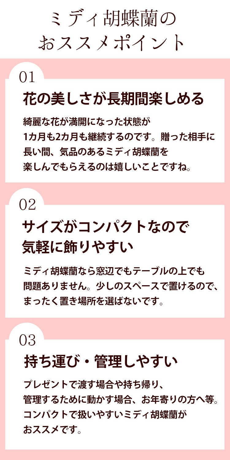 他の画像を見る 送料無料 お供え用 鉢植え ミディ化粧蘭 ケショウラン コチョウラン 洋蘭<3本立ち>18輪以上 当店特別価格 ¥ 24,200 税込 会員価格あり Web会員様特別価格 ¥ 22,990 税込 詳細を見る お気に入りに登録する