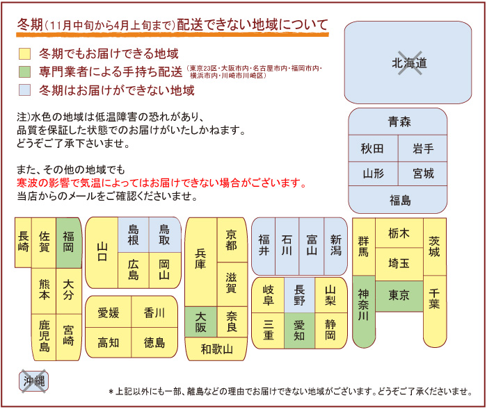 <冬季期間(11月〜4月)の配送が出来ない地域>