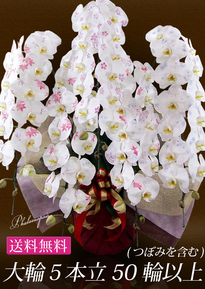 送料無料 化粧蘭 ケショウラン 胡蝶蘭 洋蘭<大輪・5本立ち>50輪前後