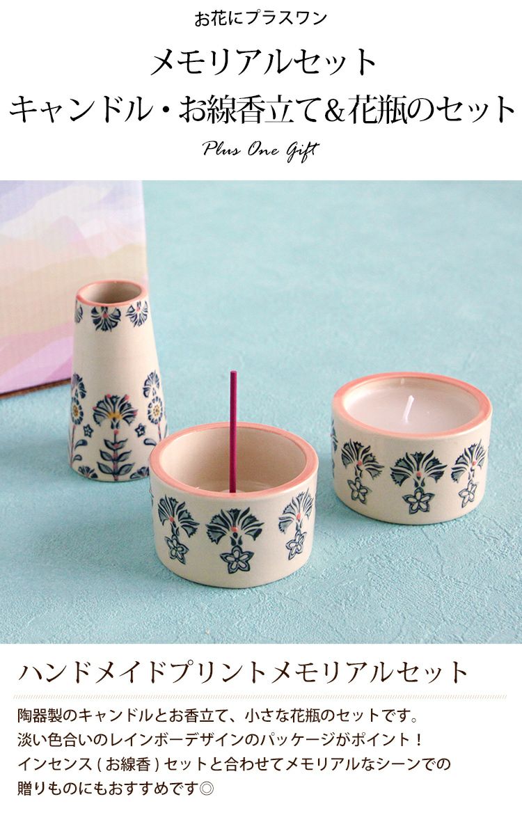 他の画像を見る セット商品 プラスワン お供え お彼岸 法事 命日 一周忌 お悔やみ お盆 お供え物 【お花にプラスワン】メモリアルセット 陶器製 キャンドル お香立て 花瓶 セット 仏具 花器(※メモリアルセットのみの購入はできません※ 当店特別価格 ¥ 2,200 税込 詳細を見る お気に入りに登録する