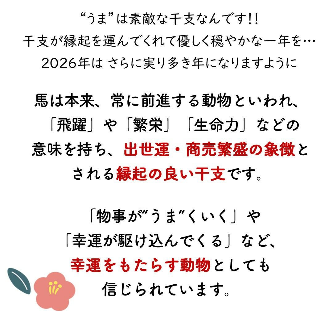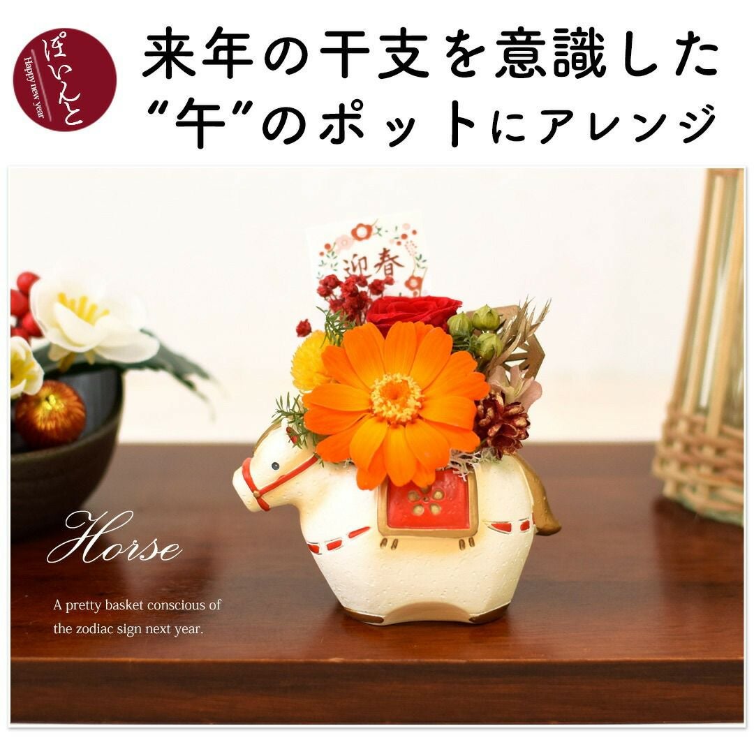 他の画像を見る アニマルモチーフ プリザーブドフラワー 干支のモチーフ付の毎年恒例人気シリーズ♪ 正月飾り 2026 プリザーブドフラワー 干支飾り うま 当店特別価格 ¥ 2,750 税込 会員価格あり Web会員様特別価格 ¥ 2,612 税込 在庫切れ 詳細を見る お気に入りに登録する