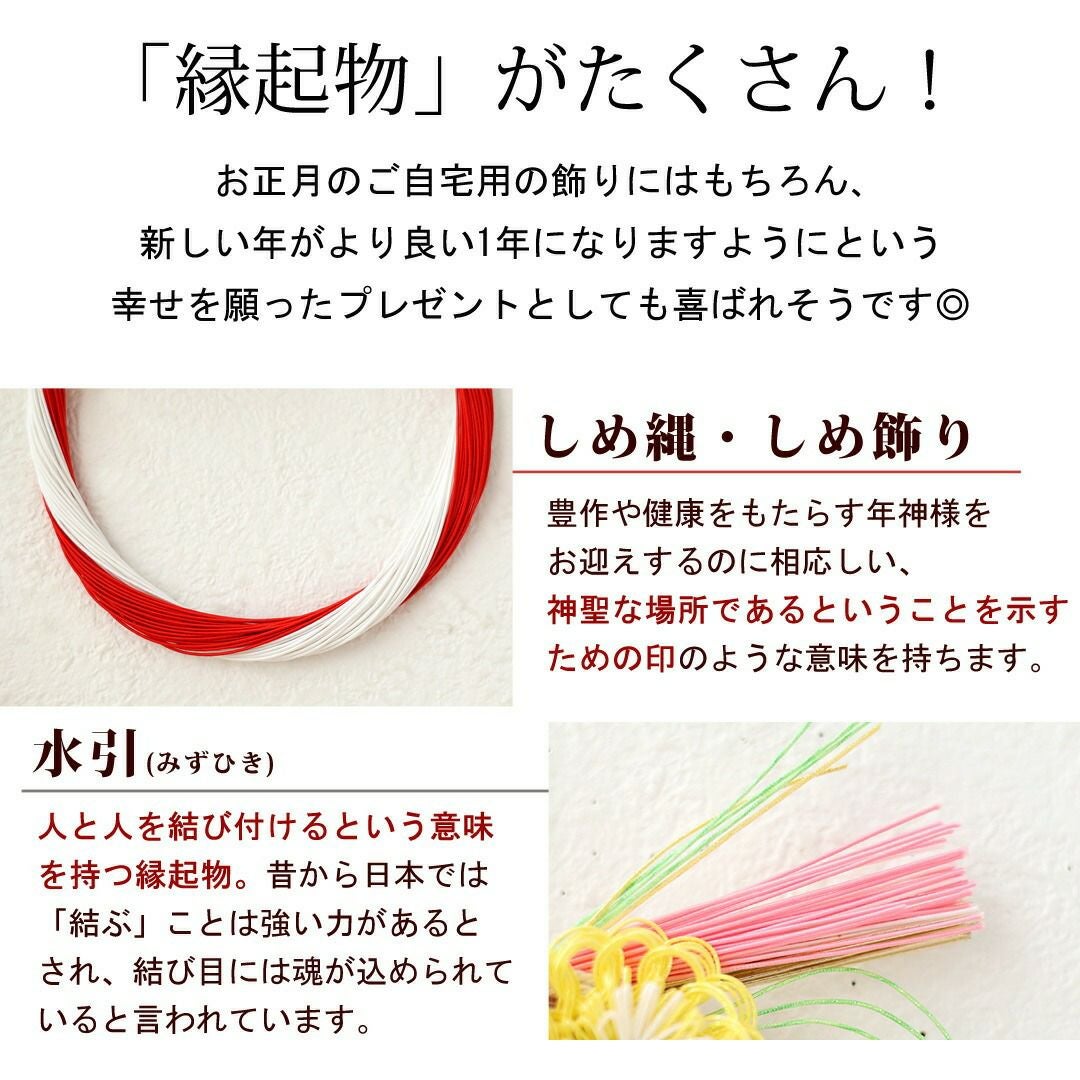 他の画像を見る 送料無料 造花 ドライフラワー 新年のお玄関をおしゃれに彩るアーティフィシャル お正月 新作 おめでた飾り 選べる3種類 [12/15~31届] 当店特別価格 ¥ 2,680 税込 会員価格あり Web会員様特別価格 ¥ 2,546 税込 在庫切れ 詳細を見る お気に入りに登録する