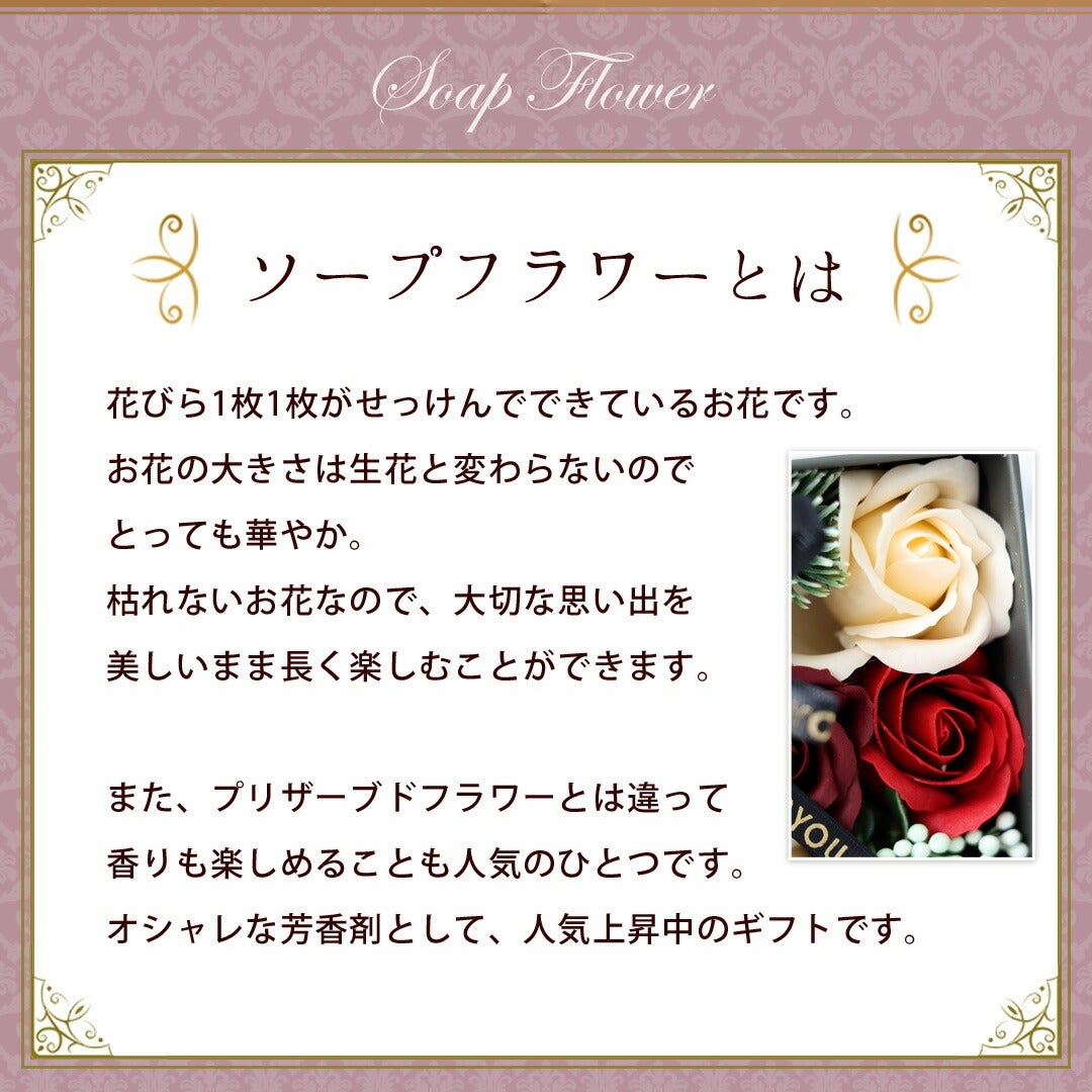 他の画像を見る 即日発送 送料無料 ソープフラワー お誕生日・お祝い・プレゼントなどに人気 【土日も発送】 即日発送対応 ディスプレイボックス ソープフラワー アレンジ 当店特別価格 ¥ 3,100 税込 会員価格あり Web会員様特別価格 ¥ 2,945 税込 花ジャンル5回受賞店 土日も発送中! 人気急上昇!石けんのお花 ソープフラワー サプライズ お誕生日・お祝い・プレゼントなどに人気 詳細を見る お気に入りに登録する