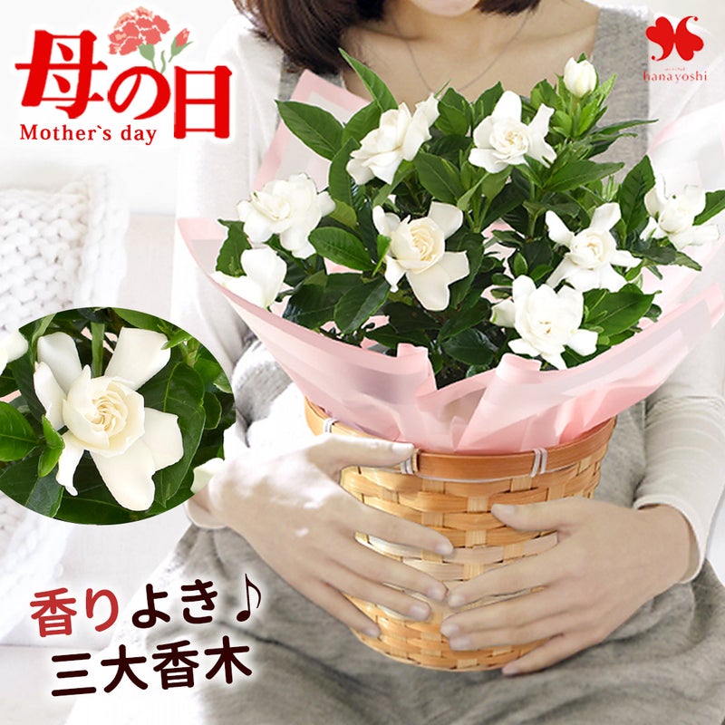 母の日 2026 プレゼント 花 鉢植え ガーデニア クチナシ 5号鉢 in バスケット