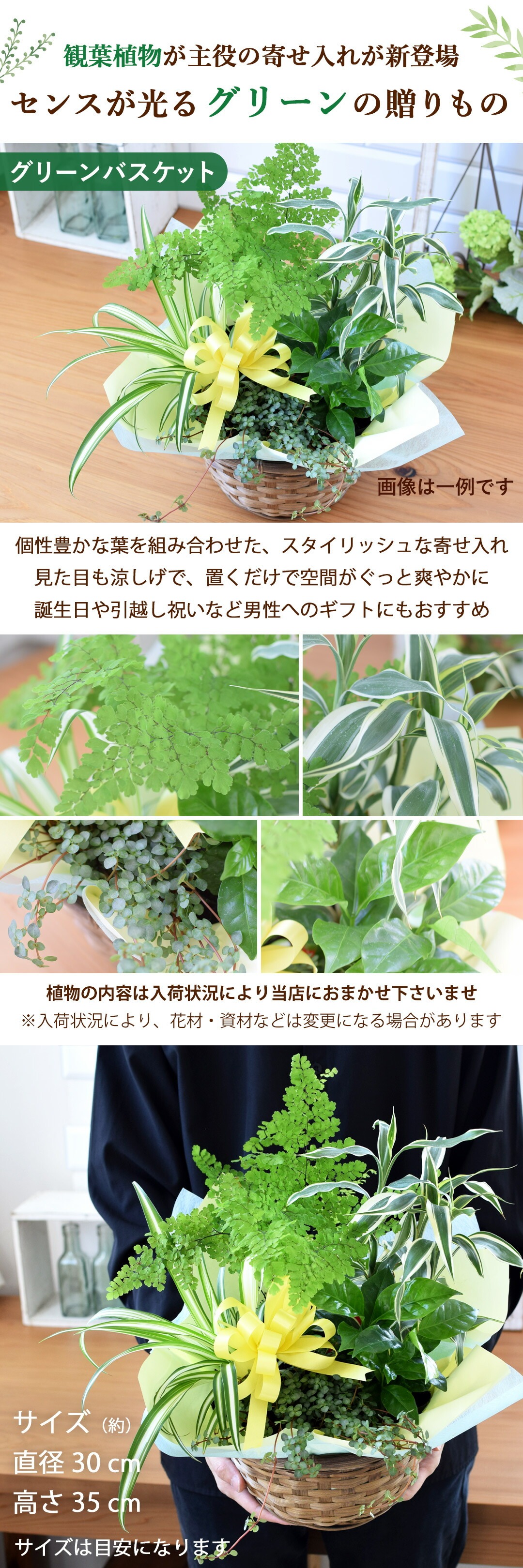 5. 送料無料 季節のおまかせ花鉢とグリーンの寄せ入れ Mサイズ フラワーバスケット