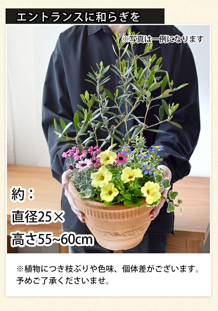 他の画像を見る 送料無料 誕生日 鉢植え 寄せ植え 観葉植物 香川県の鶴亀園さんのオリーブ シンボルツリーの寄せ植え 鶴亀園オリーブ <テラコッタ鉢でお届け> 当店特別価格 ¥ 8,816 税込 会員価格あり Web会員様特別価格 ¥ 8,375 税込 在庫切れ 詳細を見る お気に入りに登録する