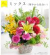■季節の花各種、グリーン / バスケット(デザインおまかせ) / ラッピング / お取扱い説明書 / 品質保証付きショップカード