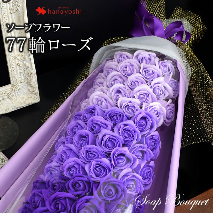 【土日も発送】 即日発送対応 77輪ローズ ソープフラワー シャボンブーケ 花束 ギフト 77歳 お祝い 喜寿