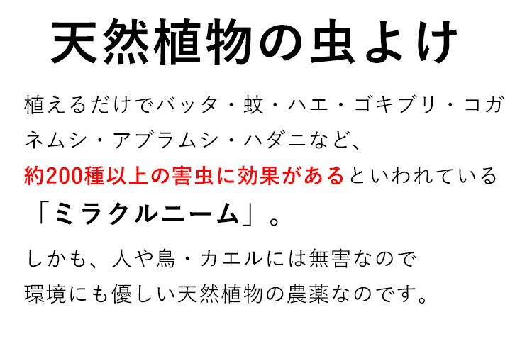 他の画像を見る 鉢植え 観葉植物 ハーブのチカラで虫除け! 虫よけ 虫除けハーブ ミラクルニーム インテリアプランツ 観葉植物 当店特別価格 ¥ 1,380 税込 会員価格あり Web会員様特別価格 ¥ 1,311 税込 在庫切れ 詳細を見る お気に入りに登録する