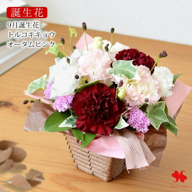 商品名 【お誕生日のお花*9月】トルコキキョウのアレンジメントSサイズ「オータムピンク」