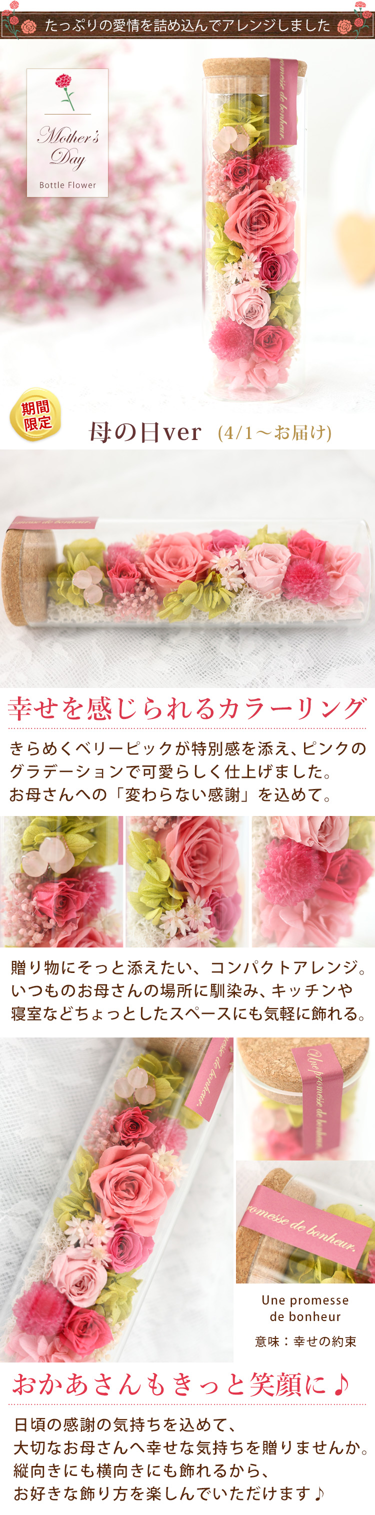 プリザーブドフラワー 送料無料 ボトルフラワー 選べる6色 春 母の日