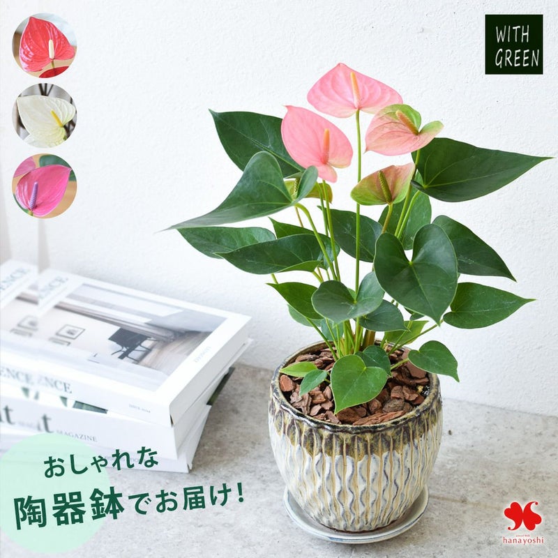 サマーギフト 鉢植え アンスリウム in 陶器鉢