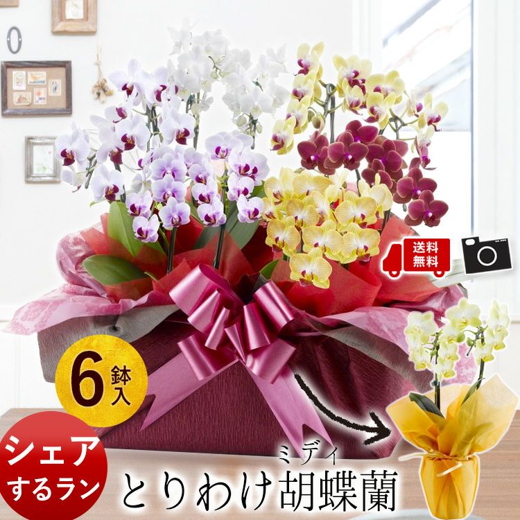 ミディ胡蝶蘭2本立ち × 6鉢入り