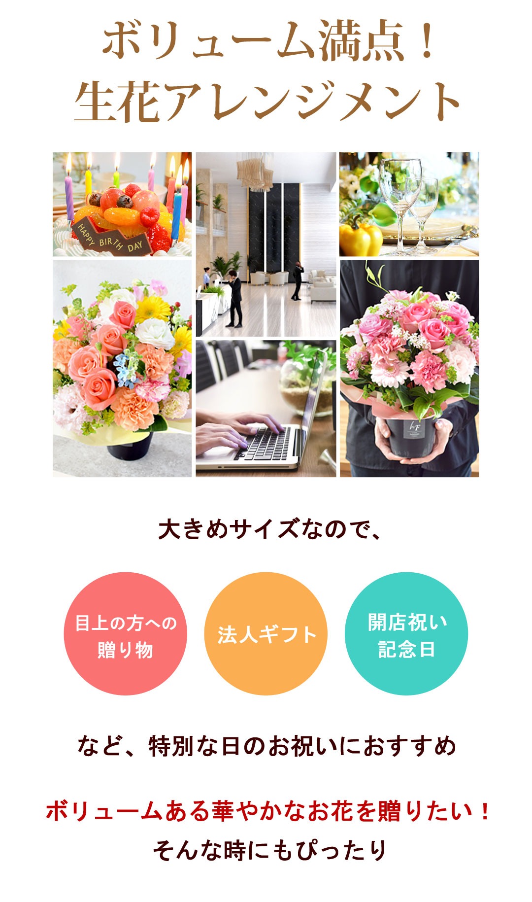 ボリュームアップ!を予算に合わせてしていただき、お花の指定にも快諾していただき、 私のイメージ以上に素敵なアレンジメントを作っていただきました。 画像も送られてきたので、使って頂いた花がわかって良かったです。 ありがとうございました。