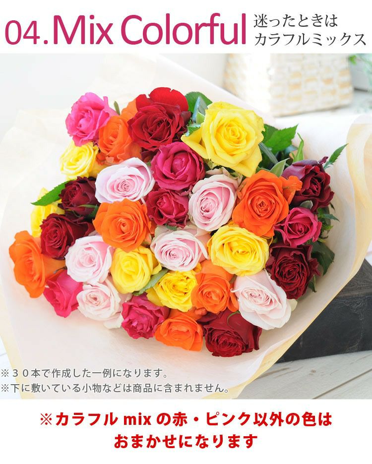 4. 20本~60本迄でお好きな本数でお作り致します 本数と花色が選べるオーダーメイド バラの花束