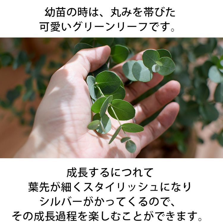 他の画像を見る 送料無料 誕生日 鉢植え 観葉植物 花言葉は再生、新生、思い出 ユーカリ・グニー&選べるデザイン鉢仕立て 鉢植え 観葉植物 10/7~11月中旬頃お届け 当店特別価格 ¥ 9,350 税込 会員価格あり Web会員様特別価格 ¥ 8,882 税込 在庫切れ 詳細を見る お気に入りに登録する