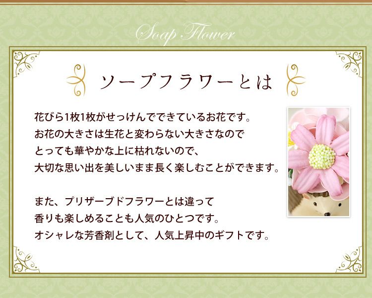他の画像を見る 即日発送 誕生日 アニマルモチーフ ソープフラワー キュートなアニマルレジンポット♪ ちびアニマル ソープフラワー 3個以上で送料無料<1配送先に限る> アニマルレジンポット アレンジ 選べる5カラー 当店特別価格 ¥ 1,980 税込 会員価格あり Web会員様特別価格 ¥ 1,881 税込 在庫切れ 詳細を見る お気に入りに登録する