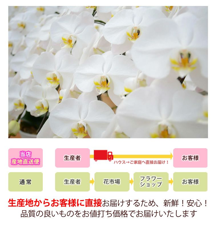 他の画像を見る 送料無料 誕生日 花言葉は「幸せが飛んでくる」 !産地直送!胡蝶蘭◎ 産地直送!リーフさんの カラー胡蝶蘭 コットンキャンディ MIYABI<大輪・3本立ち> 30輪以上 当店特別価格 ¥ 39,600 税込 在庫切れ 詳細を見る お気に入りに登録する