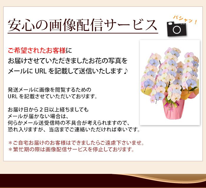 他の画像を見る 送料無料 誕生日 鉢植え 花言葉は「幸せが飛んでくる」 ミディ胡蝶蘭 産地直送! リーフさんの ミディ胡蝶蘭3本27輪 【画像配信】 送料無料 当店特別価格 ¥ 11,000 税込 在庫切れ 詳細を見る お気に入りに登録する