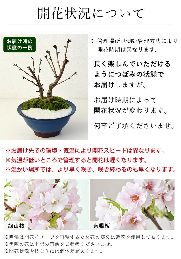 他の画像を見る 送料無料 鉢植え おうちで桜のお花見ができる創作盆栽 桜 盆栽 花芽付 創作盆栽~旭山桜&南殿桜2本植え~ 万古焼手造り 2/25~4/6で日時指定OK 当店特別価格 ¥ 7,680 税込 会員価格あり Web会員様特別価格 ¥ 7,295 税込 在庫切れ 詳細を見る お気に入りに登録する