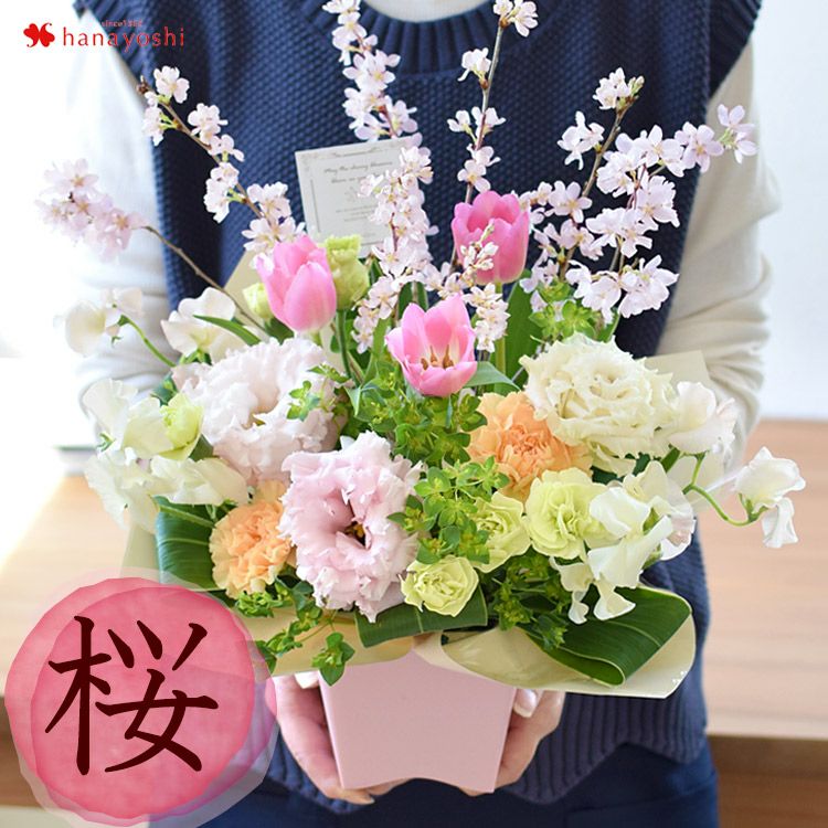 春限定 2024 送料無料 桜と春の花の生花アレンジ さくら日和 1/30~3/22の間にお届け