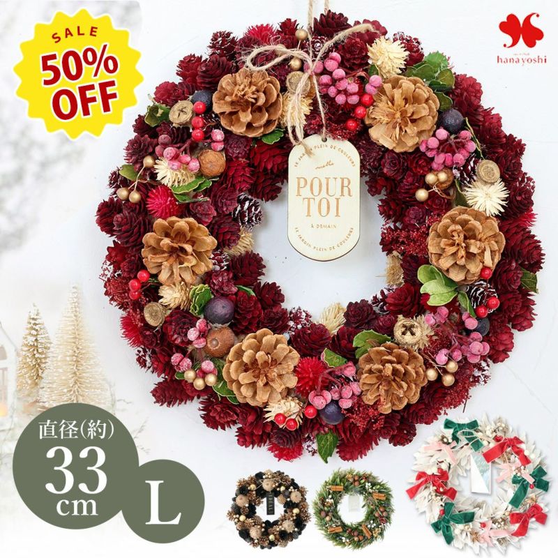 2025 クリスマス 新作リース Lサイズ 選べる15種類 直径約31.5~34cm 天然素材 ドライフラワー [RSL]