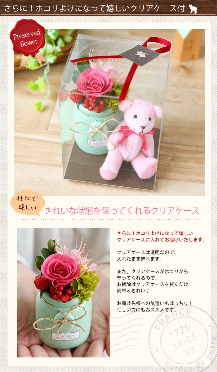 他の画像を見る 即日発送 セット商品 誕生日 アニマルモチーフ プリザーブドフラワー ホコリよけになるクリアケース付【同梱OK】 ブリザードフラワーくまさんとミルクポットn1 当店特別価格 ¥ 2,990 税込 会員価格あり Web会員様特別価格 ¥ 2,840 税込 在庫切れ 詳細を見る お気に入りに登録する