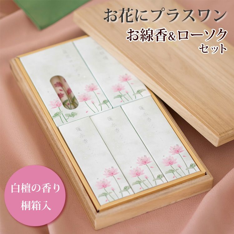 4. 【お花にプラスワン】 蓮水香 白檀の香り 蝋燭セット【桐箱入り】※ローソクと線香セットのみの購入はできません※