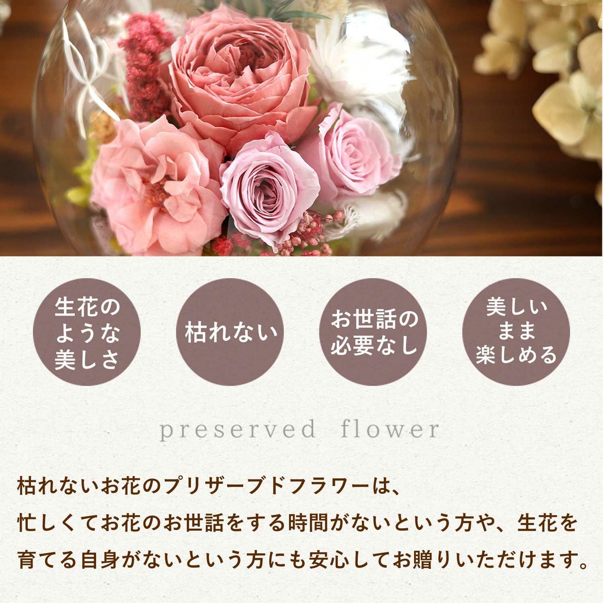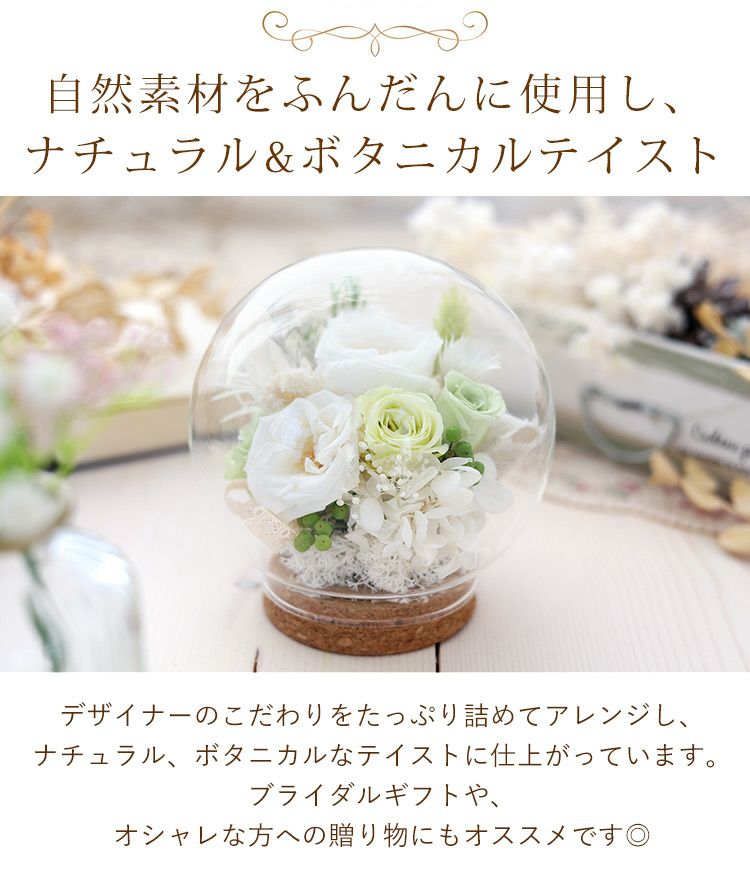 他の画像を見る 即日発送 送料無料 誕生日 プリザーブドフラワー ブライダルギフトやオシャレな方への贈り物に◎ プリザーブドフラワー ガラスドーム バブルドーム LUMIE -ルミエ 当店特別価格 ¥ 4,780 税込 会員価格あり Web会員様特別価格 ¥ 4,541 税込 詳細を見る お気に入りに登録する