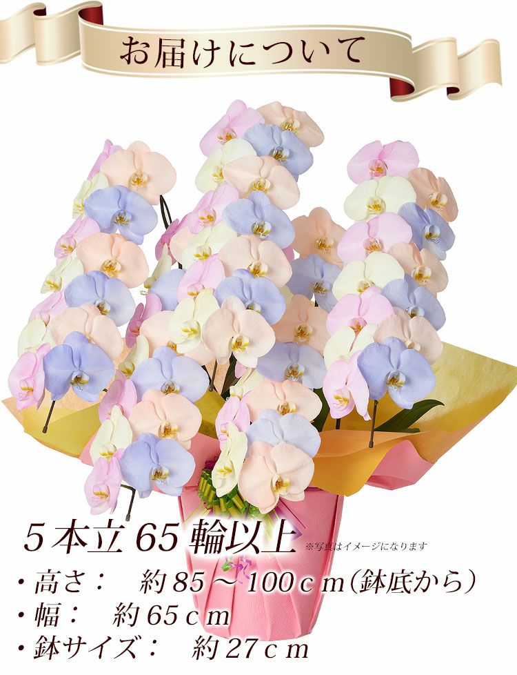 他の画像を見る 送料無料 誕生日 花言葉は「幸せが飛んでくる」 !産地直送!胡蝶蘭◎ 産地直送!リーフさんの カラー胡蝶蘭 コットンキャンディ MIYABI<大輪・5本立ち>65輪以上 当店特別価格 ¥ 77,000 税込 詳細を見る お気に入りに登録する