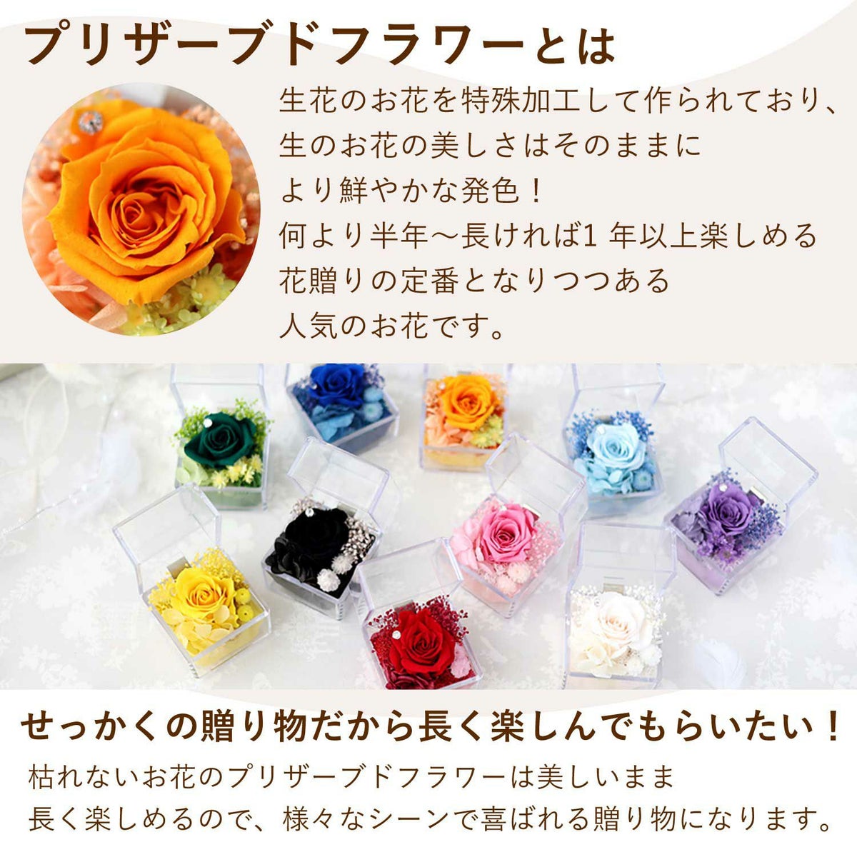 他の画像を見る 送料無料 誕生日 プリザーブドフラワー ギフトにもオススメ!選べる2種類 ボックスフラワー プリザーブドフラワー hana cube 寿 当店特別価格 ¥ 4,580 税込 会員価格あり Web会員様特別価格 ¥ 4,351 税込 詳細を見る お気に入りに登録する