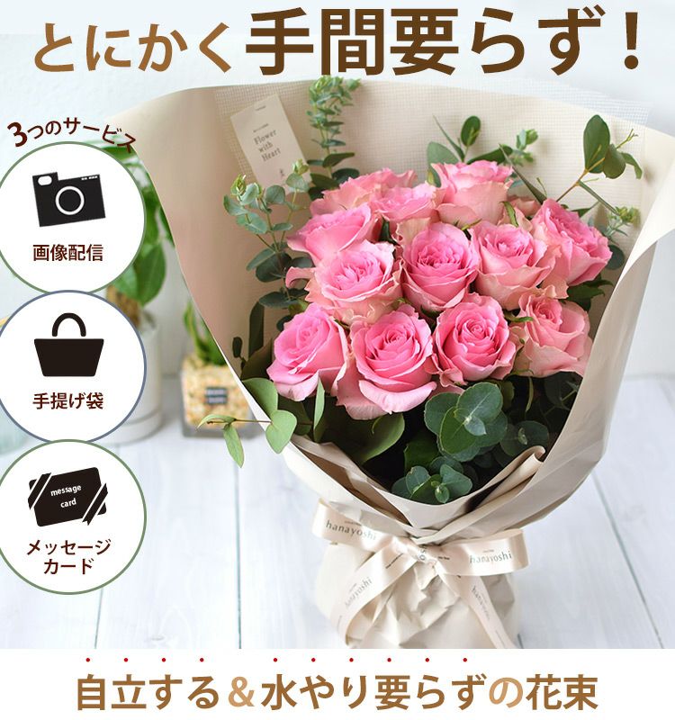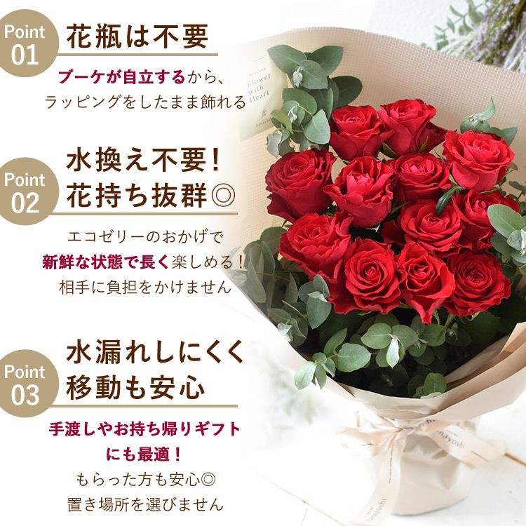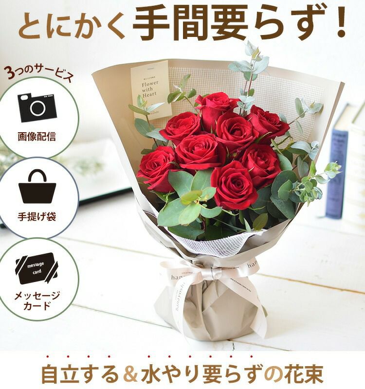 他の画像を見る 即日発送 送料無料 誕生日 生花花束 そのまま飾れる スタンディングブーケ そのままブーケ~花瓶のいらない生花の花束 バラ尽くしの そのままブーケ(R) ローザ エイトローズ 当店特別価格 ¥ 4,390 税込 会員価格あり Web会員様特別価格 ¥ 4,170 税込 詳細を見る お気に入りに登録する