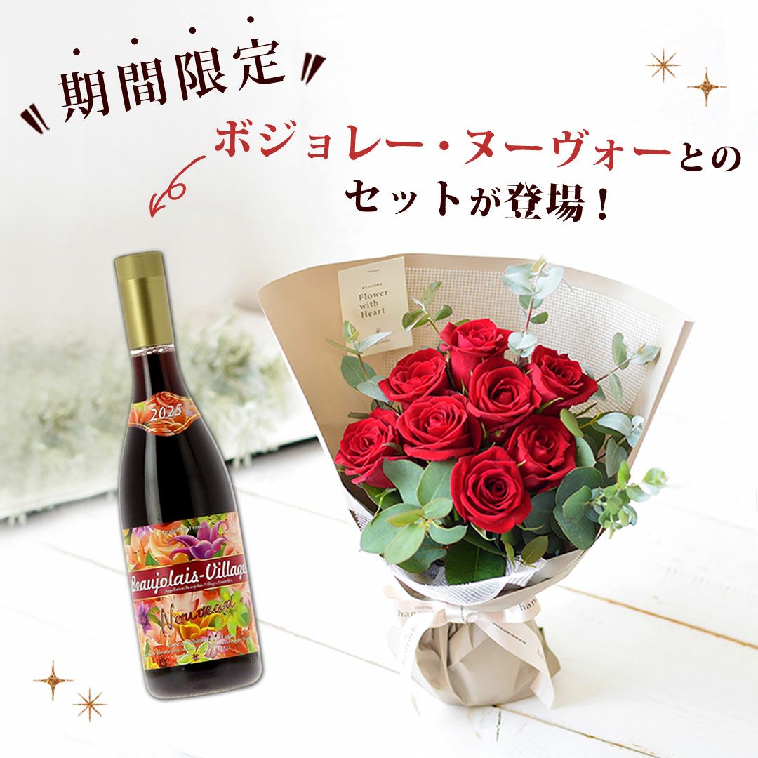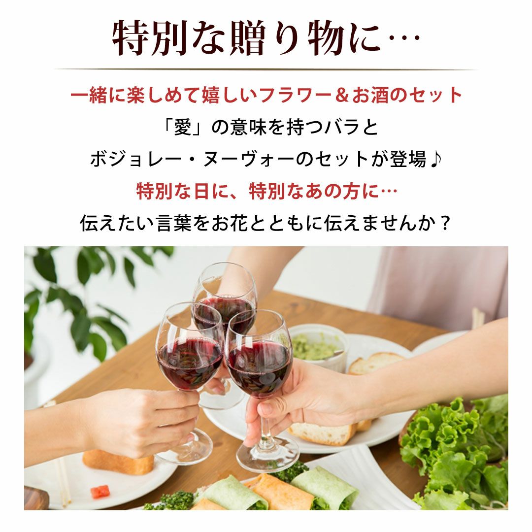 他の画像を見る 即日発送 送料無料 誕生日 生花花束 期間限定の特別セット! そのままブーケ バラ尽くしの そのままブーケ(R) ローザ ダズンローズ & ボジョレー・ヌーヴォー 当店特別価格 ¥ 7,980 税込 会員価格あり Web会員様特別価格 ¥ 7,581 税込 詳細を見る お気に入りに登録する
