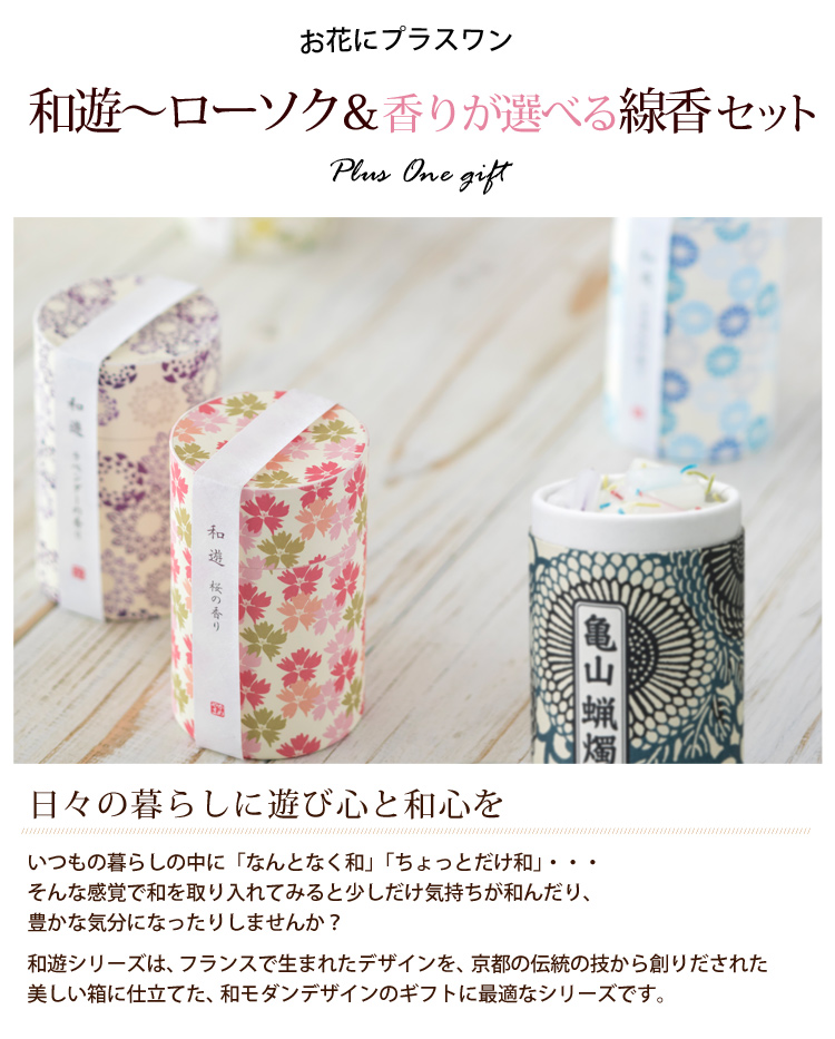 商品名 【お花にプラスワン】 和游〜10分蝋燭&線香筒箱セット