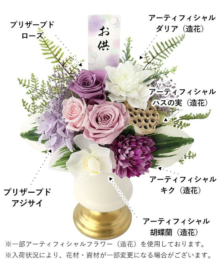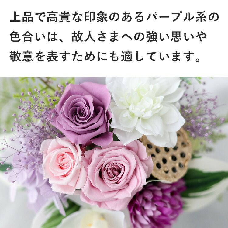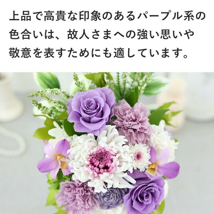 他の画像を見る 送料無料 お供え用 プリザーブドフラワー 枯れないお花のアレンジ お供え プリザーブドフラワー&アーティフィシャルフラワー 陽紫 ひさき 当店特別価格 ¥ 20,900 税込 会員価格あり Web会員様特別価格 ¥ 19,855 税込 詳細を見る お気に入りに登録する