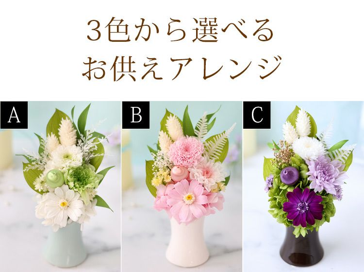 他の画像を見る 即日発送 送料無料 お供え用 造花 枯れないお花のお供えアレンジ 送料無料 お供え 仏花 アーティフィシャルフラワー 凛の供花 選べる3種 2個以上で送料無料<1配送先に限る> 当店特別価格 ¥ 3,190 税込 会員価格あり Web会員様特別価格 ¥ 3,030 税込 詳細を見る お気に入りに登録する