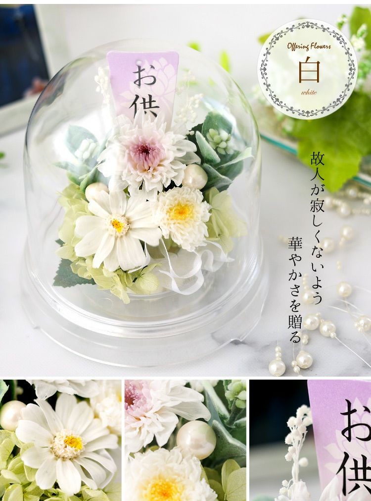 他の画像を見る 即日発送 送料無料 お供え用 プリザーブドフラワー 枯れないお花のドームアレンジ プリザーブドフラワー お供えドーム 慈音 当店特別価格 ¥ 6,180 税込 会員価格あり Web会員様特別価格 ¥ 5,871 税込 詳細を見る お気に入りに登録する