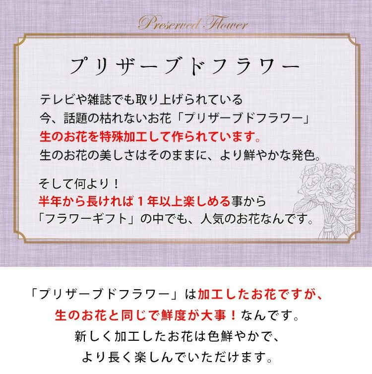 他の画像を見る 即日発送 送料無料 誕生日 プリザーブドフラワー ブライダルギフトやオシャレな方への贈り物に◎ プリザーブドフラワー ガラスドーム バブルドーム LUMIE -ルミエ 当店特別価格 ¥ 4,780 税込 会員価格あり Web会員様特別価格 ¥ 4,541 税込 詳細を見る お気に入りに登録する
