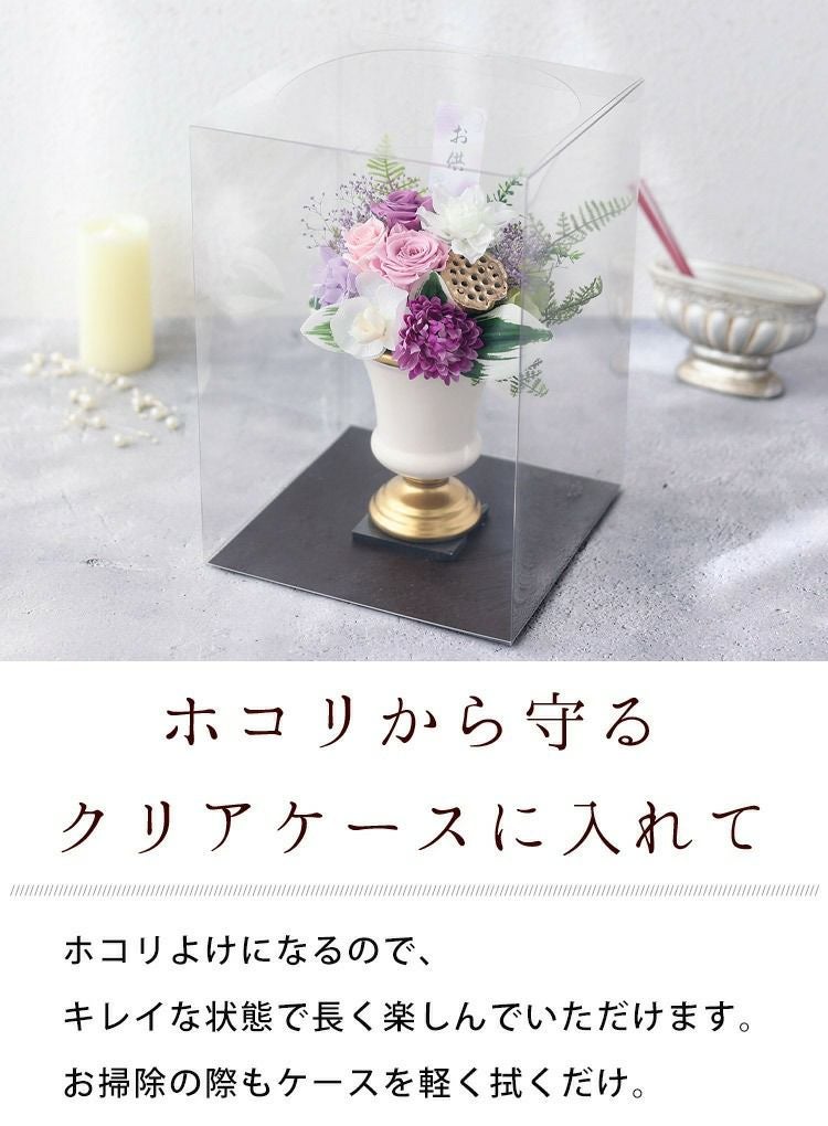他の画像を見る 即日発送 送料無料 クリアケース付 お供え用 プリザーブドフラワー ホコリよけになるクリアケース付き! プリザーブドフラワー 仏花 お供え花 『Priere~プリエ―ル-祈り』 選べる3色 当店特別価格 ¥ 10,580 税込 会員価格あり Web会員様特別価格 ¥ 10,051 税込 詳細を見る お気に入りに登録する