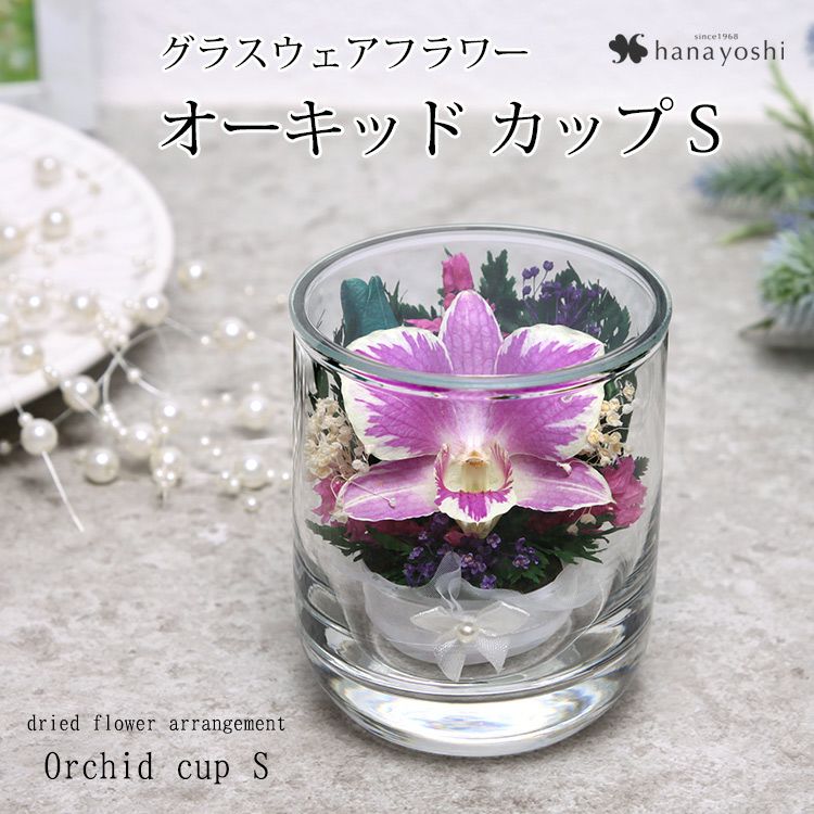 お仏壇やメモリアルスペースに◎透明感抜群のグラスウェアフラワー お供え グラスウェアフラワーオーキッド カップS ドライフラワー