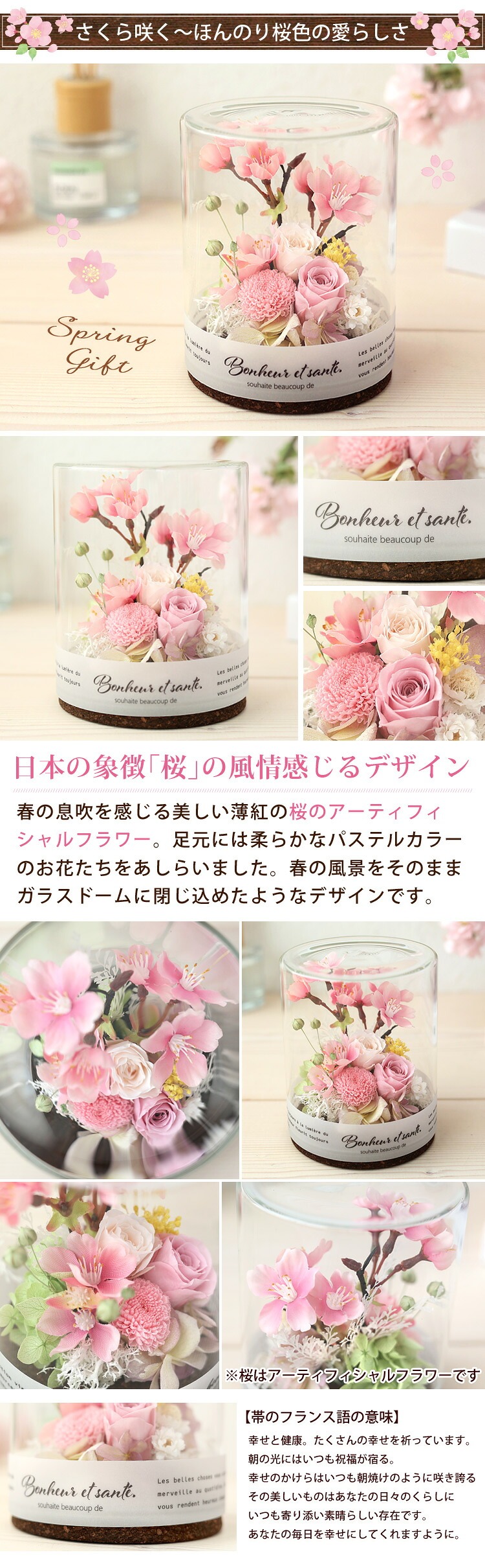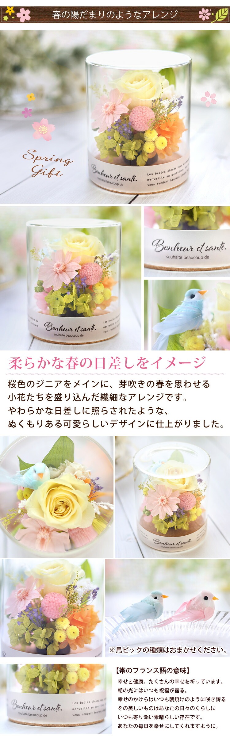 ・プリザーブドフラワー・ドライフラワーは生花を加工しているため、製造ロットや個体ごとに、サイズ・色合い・質感などが若干異なります。