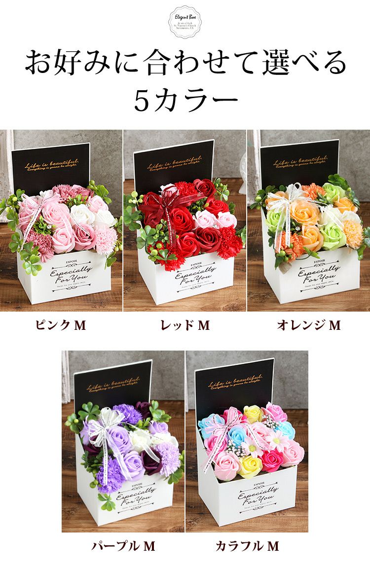 5. 【土日も発送】 即日発送対応 ソープ送料無料 フラワー エレガントボックス 選べる5カラー 花 誕生日 プレゼント