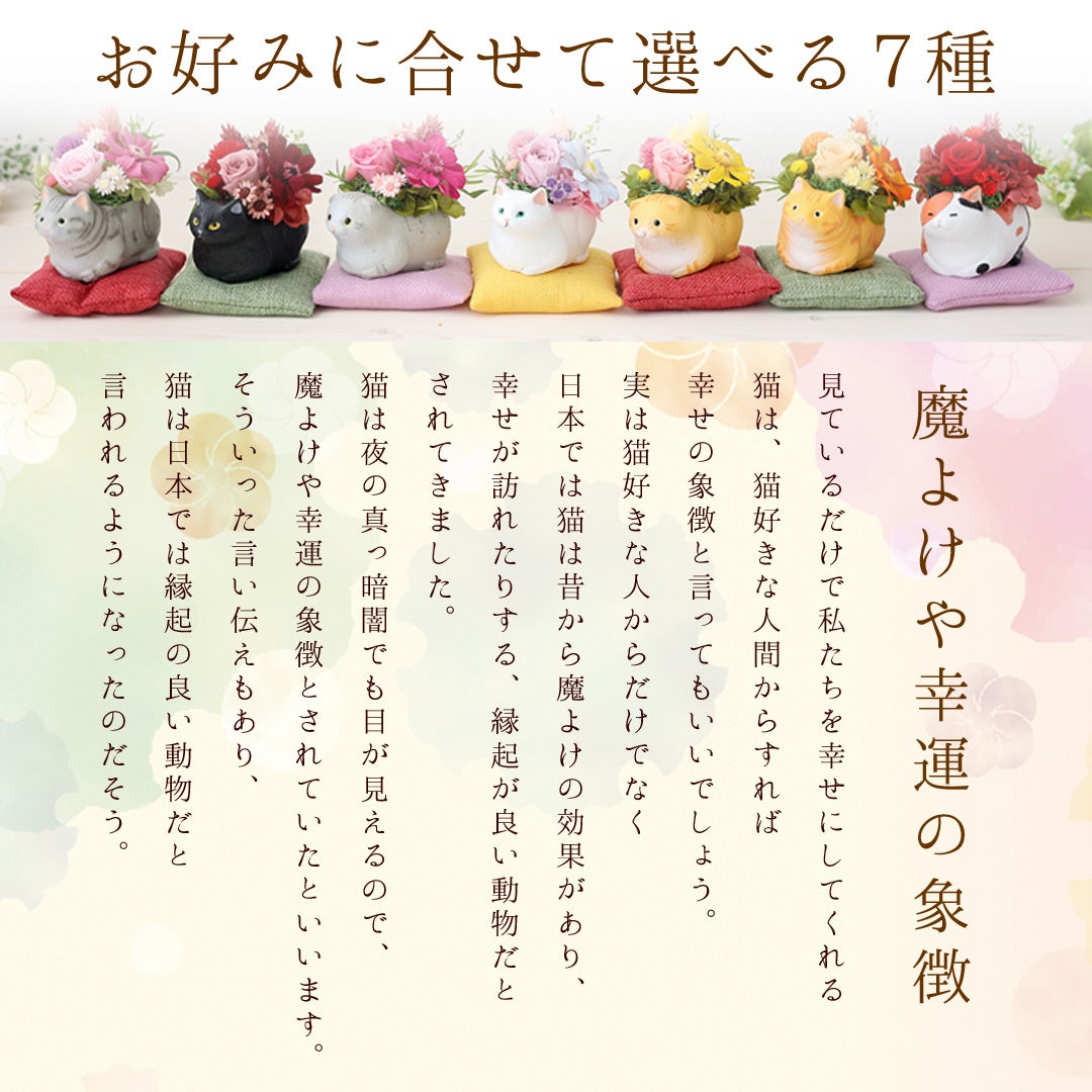 他の画像を見る 送料無料 クリアケース付 アニマルモチーフ プリザーブドフラワー ネコ好きさんにピッタリ♪ プリザーブドフラワー 和風 「くつろぎねこ」 7種類 当店特別価格 ¥ 3,680 税込 会員価格あり Web会員様特別価格 ¥ 3,495 税込 詳細を見る お気に入りに登録する