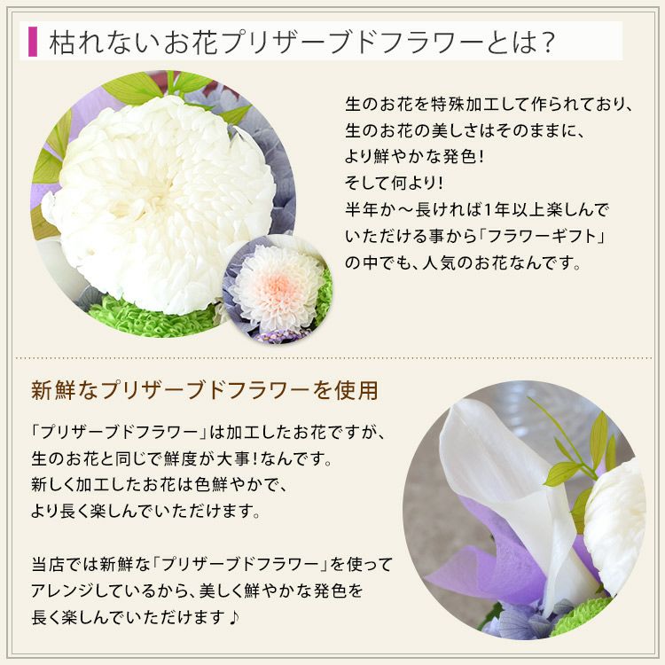 他の画像を見る 即日発送 送料無料 お供え用 プリザーブドフラワー 枯れないお花のドームアレンジ プリザーブドフラワー お供えドーム 想花 当店特別価格 ¥ 3,690 税込 会員価格あり Web会員様特別価格 ¥ 3,505 税込 詳細を見る お気に入りに登録する