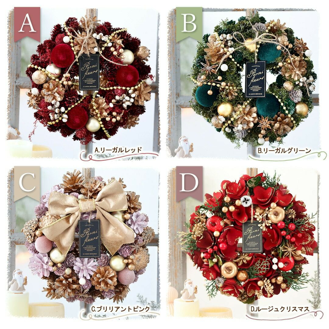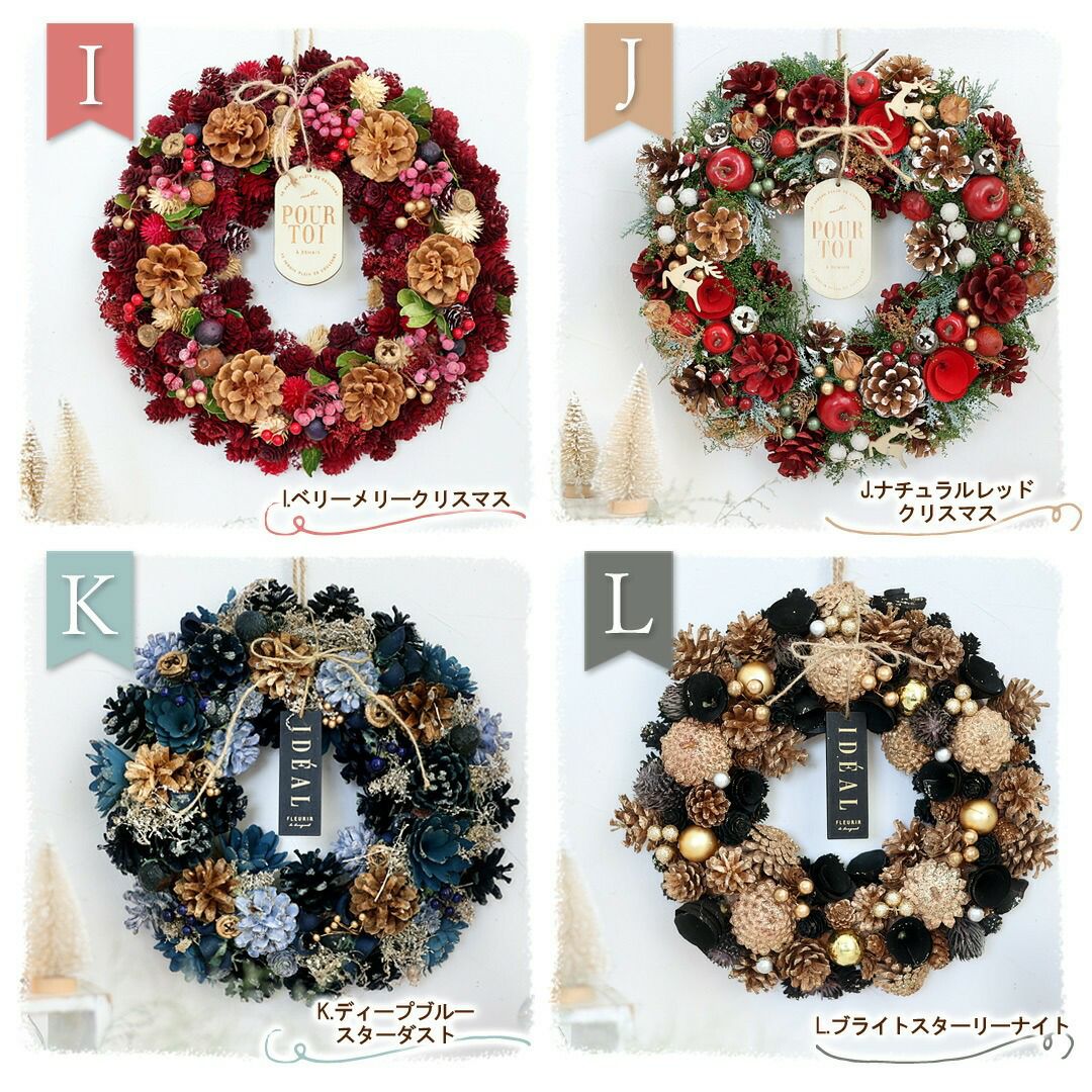 他の画像を見る 即日発送 送料無料 ドライフラワー おしゃれ空間に&インテリアにぴったり♪ 2025 クリスマス 新作リース Lサイズ 選べる15種類 直径約31.5~34cm 天然素材 ドライフラワー [RSL] 当店特別価格 ¥ 4,580 税込 会員価格あり Web会員様特別価格 ¥ 4,350 税込 詳細を見る お気に入りに登録する
